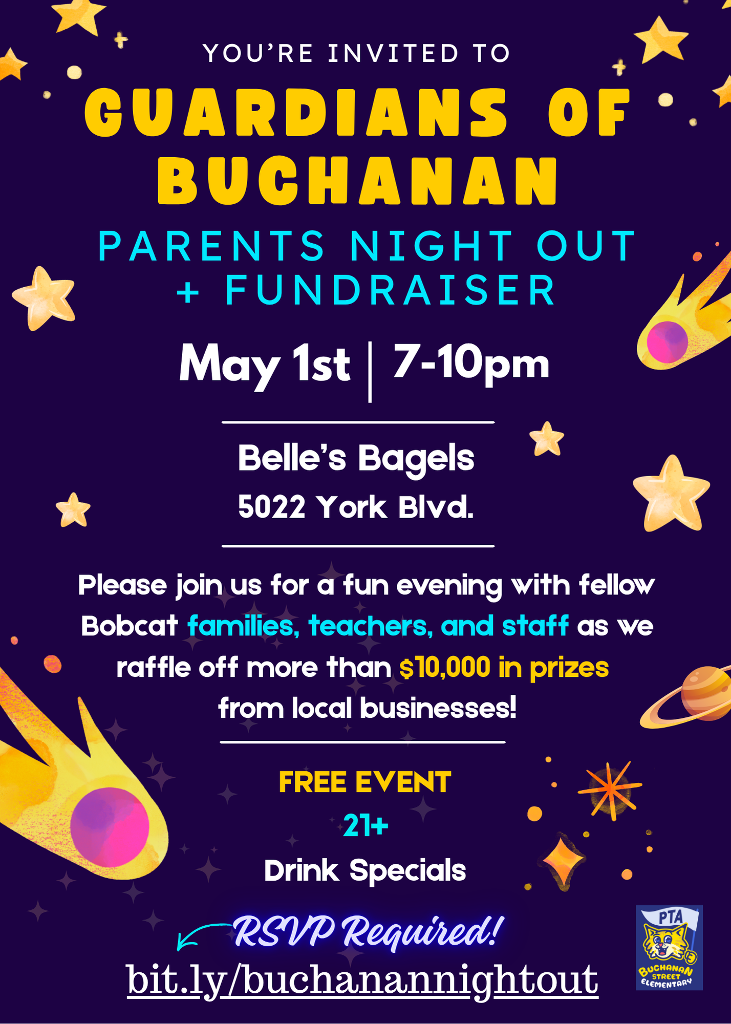 RSVP for our 2nd Annual Guardians of Buchanan Parents’ Night Out on May 1st! More info below!